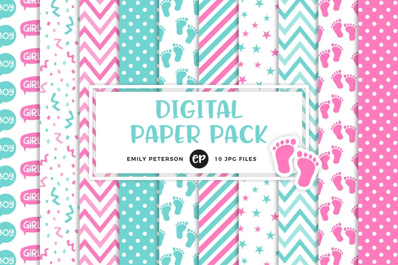 Gender Reveal Digital Paper Baby Shower Background Paper Etsy