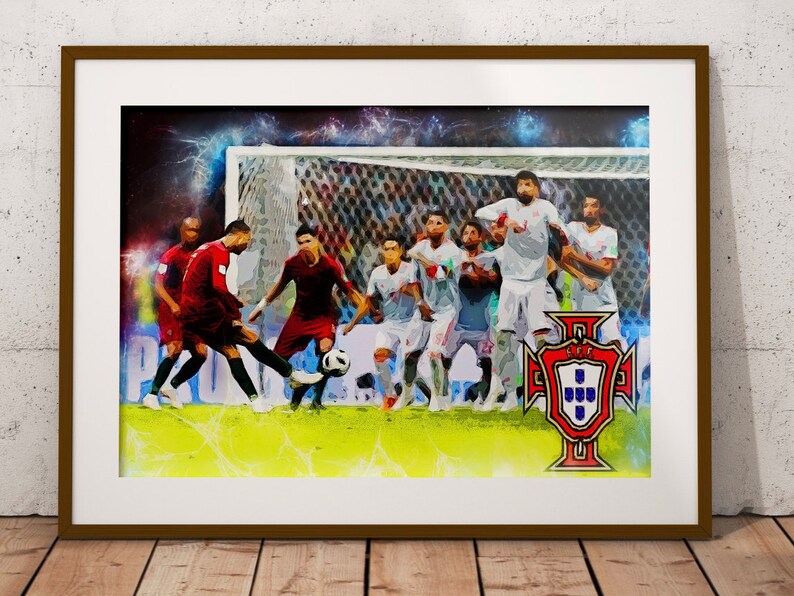 Cristiano Ronaldo Art Print World Cup 2018 Free Kick Portugal Spain Cr7 Hat Trick Poster Soccer Football