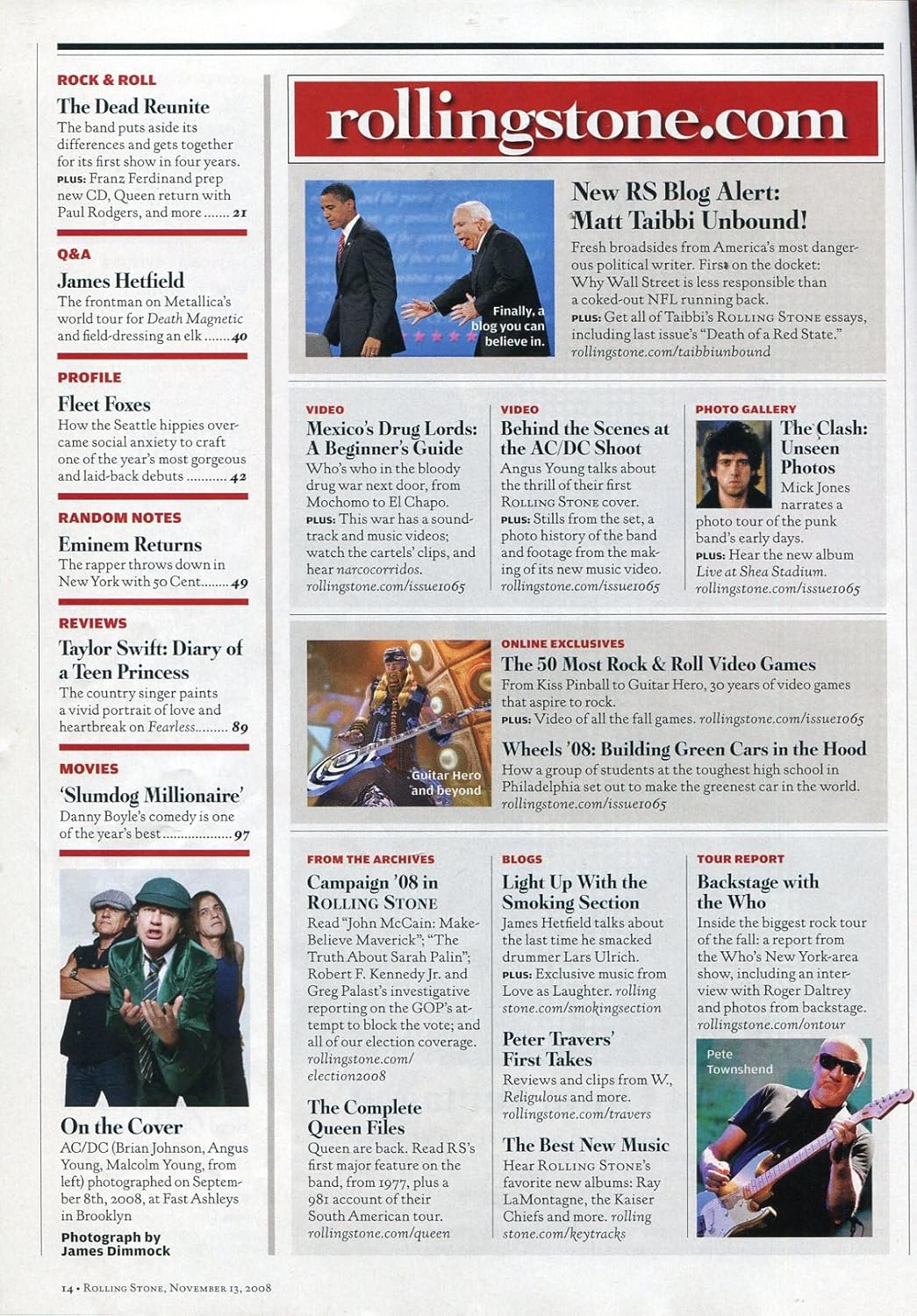 Rolling Stone Magazine November 2008 Ac Dc Brian Johnson