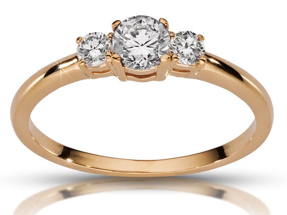 Video Solitaire Engagement Anniversary Ring 3x 100 Diamond 3 9 Mm 2x 2 5 Mm 0 33 Ct Si1 H In Yellow Or White 585 14k Gold