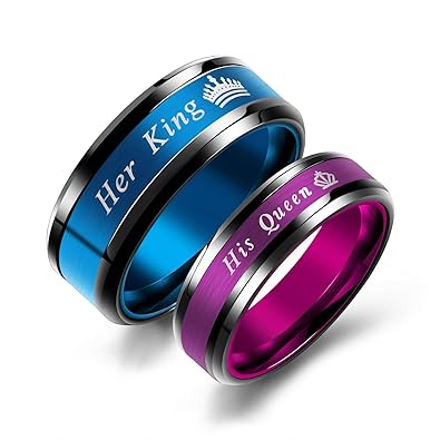 Iflytree 2pcs King And Queen Rings Wedding Engagement Anniversary Band His Hers Couples Ring Matching Set Stainless Steel Promise Rings