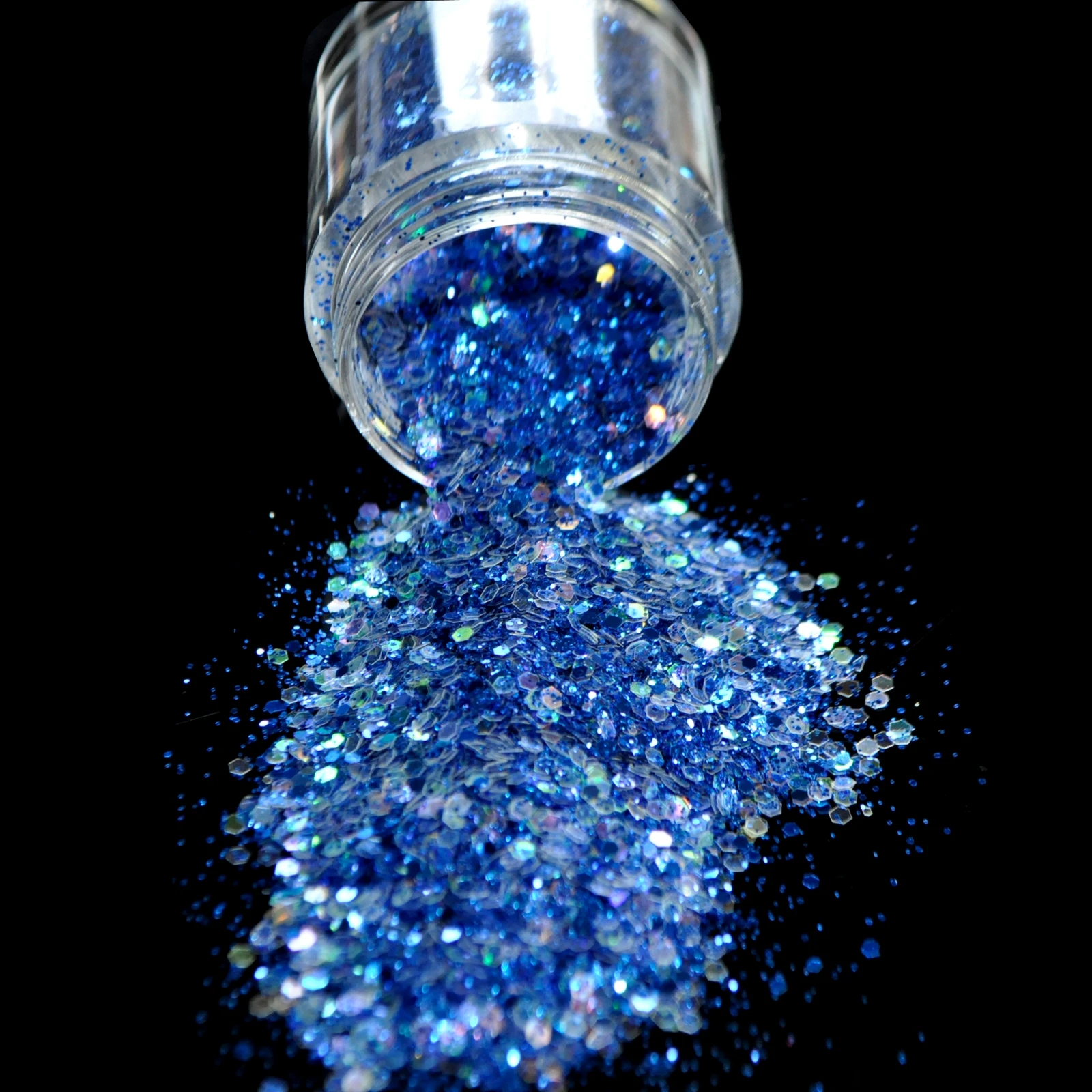 Clear Mix Size Hexagon Nail Sequins Royal Blue Acrylic Nail