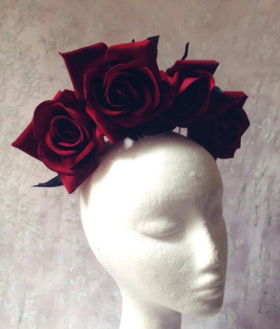Gothic Queen Blood Red Rose Thorn Flower Crown Headband