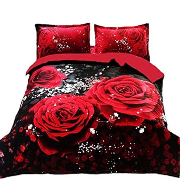 Suncloris 3d Big Red Rose Queen Size 4pc Bedding Sheet Sets 1duvet Cover 1flat Sheet 2 Pillowcase No Comforter Inside