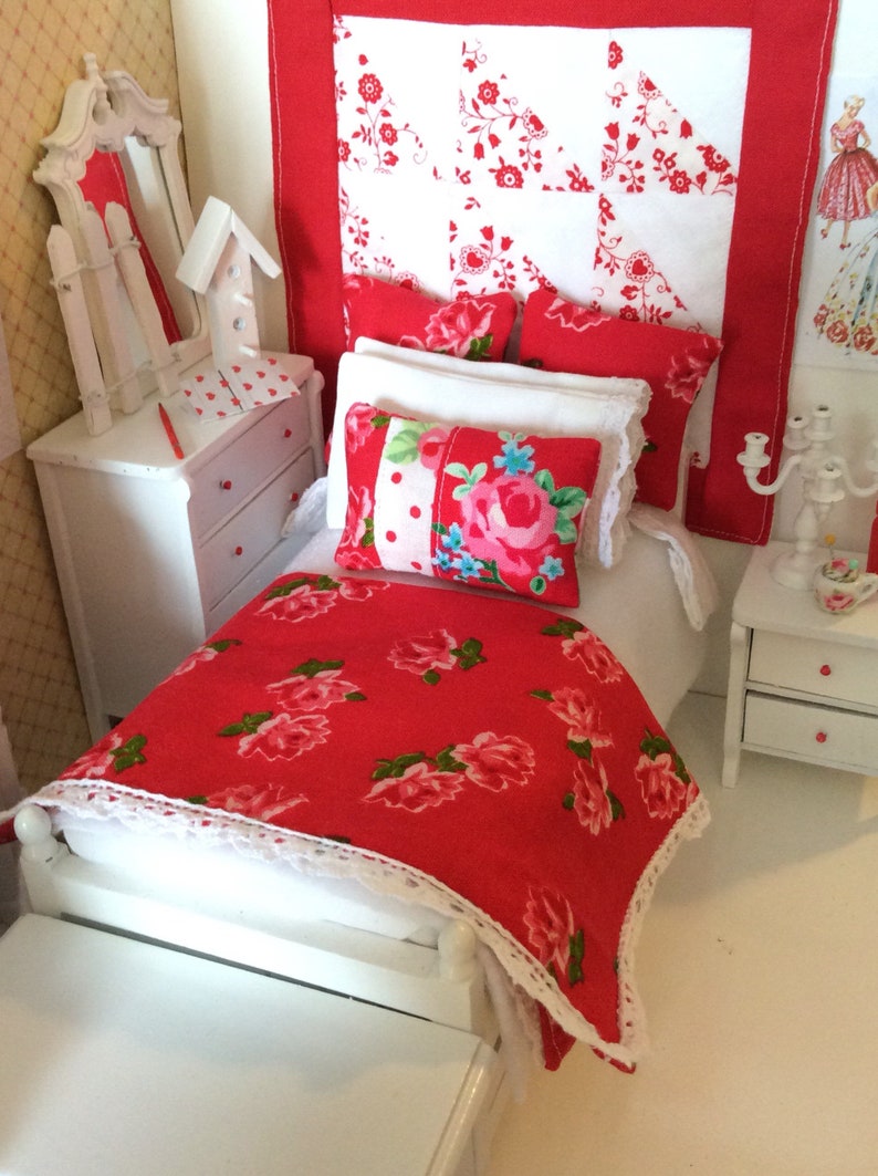 Miniature Cottage Red Rose Comforter Trundle Bed And Bedding Set