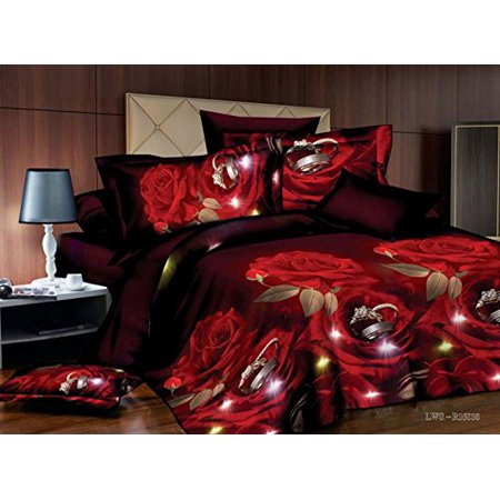 3 Piece Set Box Stitched Red Rose And Rings Prints 3d Comforter Set Y02 Queen B019ynha0g