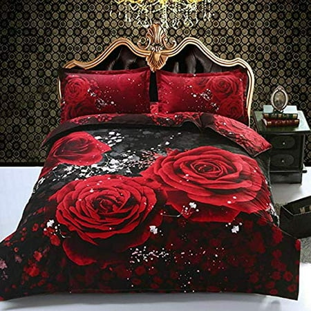 Queen Size 3d Bedding Sets 100 Cotton Red Rose Black Print 4 Piece Duvet Cover Bedding