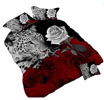 Amazon Com Heave 4pcs Fresh New Leopard Red Rose Bedding