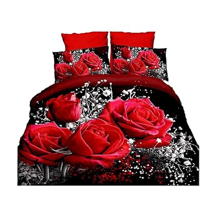 3d Print Red Rose Bedding Set Full King Queen Size 100 Duvet Cover Set 4 Pieces Microfiber Not Include Comforter From Uhhome