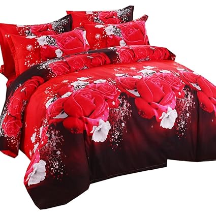 4piece Hot Red Rose Printed Bedding Comforter Set 3d Romantic Flower Duvet Cover For Double Size