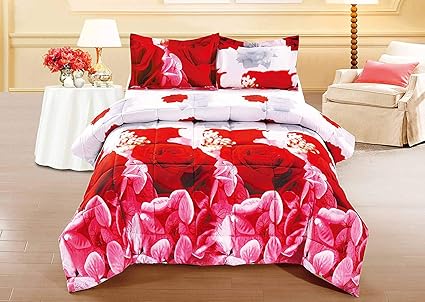 Girls Unique Red Rose Wedding Print Queen Cotton Comforter