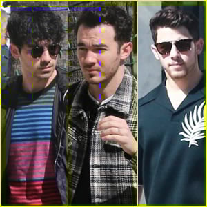 Joe Jonas leads the way as he and brothers Nick and Kevin stop by an office building on Saturday afternoon (February 23) in Beverly Hills, Calif.