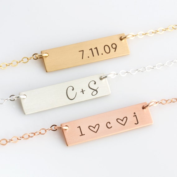 Etsy Uniquecharmjewelry Valentines Day Gift Personalized Bar Necklace Custom Name Bar Necklace Dainty Minimal Initial Necklace Handstamped