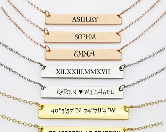 Personalized Name Bar Necklace Custom Engraved Any Name