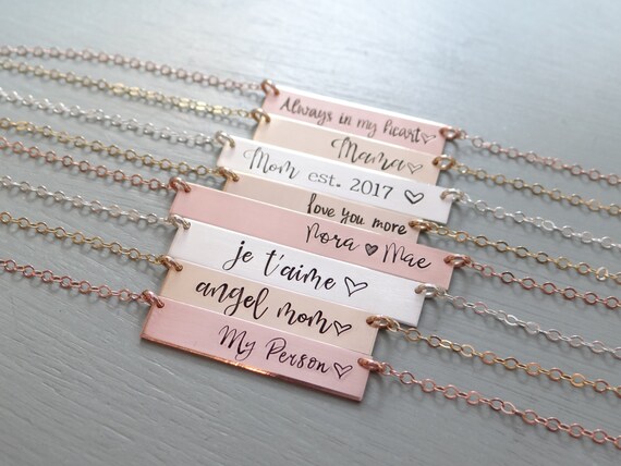 Personalized Bar Necklace Custom Name Necklace For Mom Sterling Silver Gold Filled Rose Gold Filled Personalized Necklace Gift