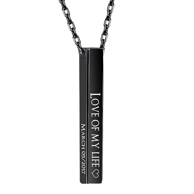 Memoshe Personalized 4 Sided Vertical Bar Necklace Custom Names Necklace Message Engraved Dainty Jewelry For Men