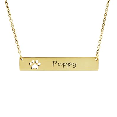 Anavia Personalized Bar Necklace Dog Paw Print Jewelry Custom Name Stainless Steel Pendant Necklace For Puppy Lover Women Men Teens Girls Friends