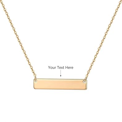 Solid Gold Bar Necklace Laser Deep Engraved Personalized Name Jewelry