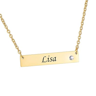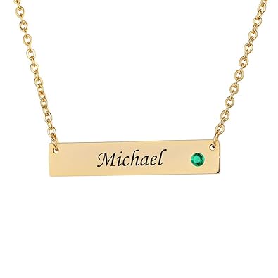 Hybedora Personalized Bar Necklace Engraved Birthstone Custom Name Necklace Charm Jewelry Gift For Women And Men