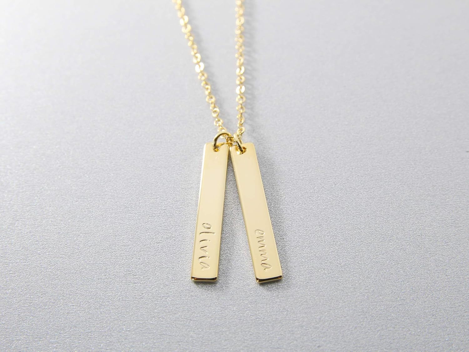 Details About Custom Name Bar Necklace Vertical Bar Pendant Engrave Name Necklace Gift For Her
