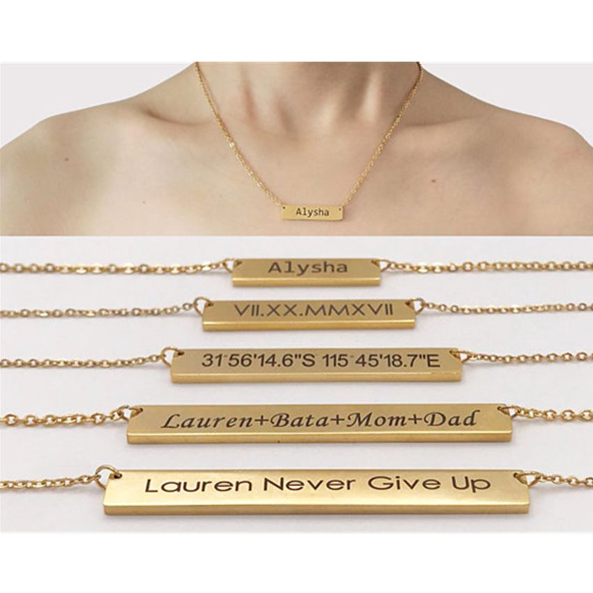 Custom Name Bar Necklace Women Jewelry Personalized Necklace Gold Colar Gargantilha Bijoux Stainless Steel Engraving Collier