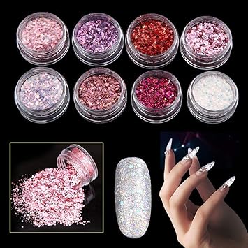 Amazon Com Wokoto 8pcs Nail Art Glitter Powder Dust With (Package Contents: -8Box/set Nail Sequins Feature: -100% Brand new and high quality -Material:Plastic -Size of each box : diameter approx 3.0cm ...)